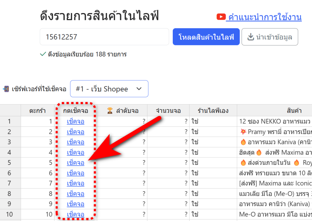 กด โหลดสินค้าในไลฟ์ รอสักครู่ให้ระบบดึงข้อมูล